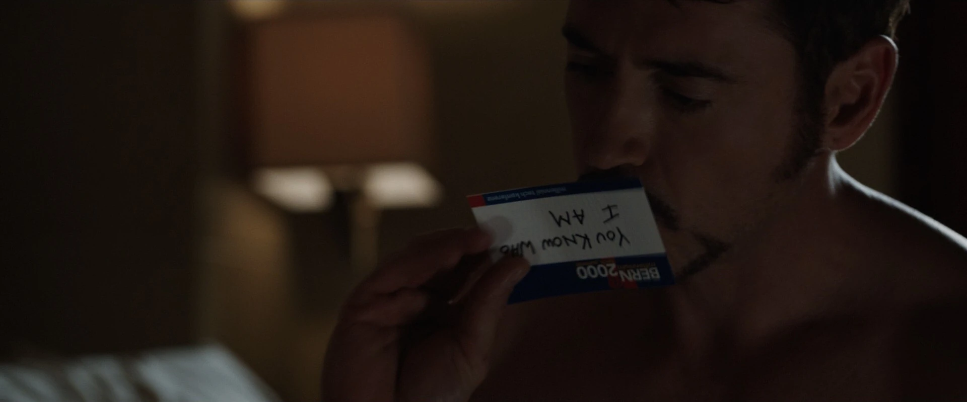While moving throughout the hotel with Happy Hogan and Hansen, Stark then arrogantly avoided a gifted but crippled scientist, Aldrich Killian, who wanted Stark’s financial backing for his own science company, Advanced Idea Mechanics. Once they were alone in an elevator together, Stark then purposely told the excited Killian to meet him on the rooftop of the building to discuss him working with Stark Industries, with the intention of not even turning up.